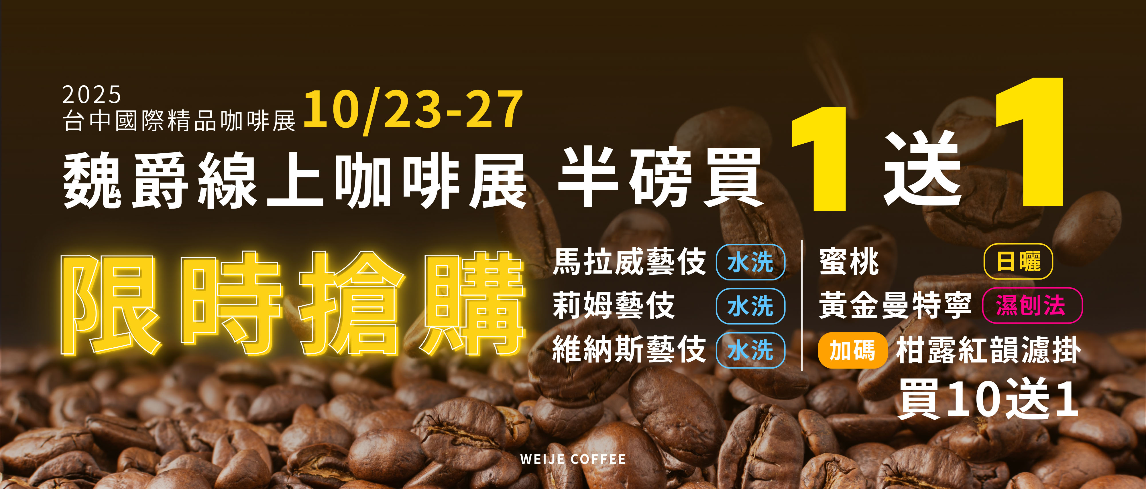 10/23~27 魏爵線上咖啡展 優惠享不完!2025 臺中國際精品咖啡展